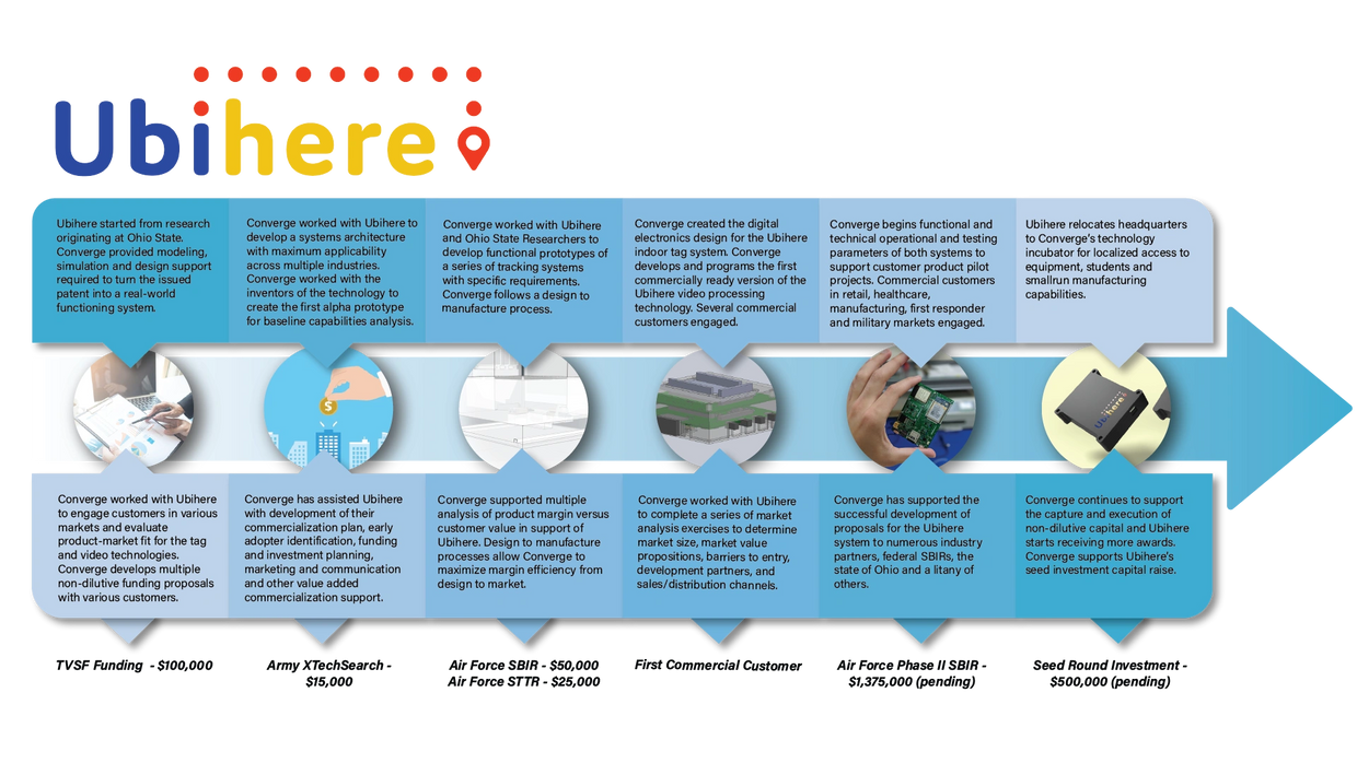 Converge Technologies employees have provided essential commercialization support for the asset tracking company Ubihere. Converge staff have provided engineering design and development support, identification and capture of non-dilutive capital, and commercialization support.